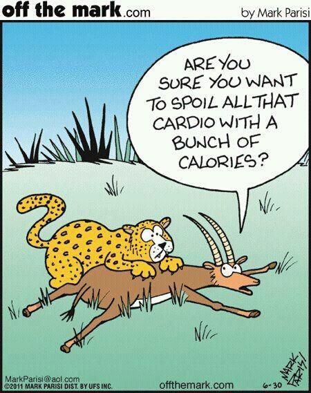 Cartoon by Mark Parisi, and yeah, the cat is sure — kitty needs those calories (and that protein!) for recovery!