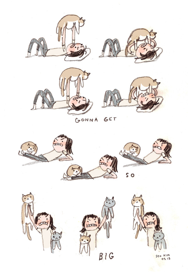 Just because you can’t get to the gym doesn’t mean you can’t get a workout in. And cats may not be the biggest weights out there, but you get extra work as they go back and forth between floppy and flailing!