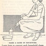 OK, this is kind of a sexist old-school illustration, but it works for everyone — men, women, and children. I am not convinced that it fully removes drudgery, but this approach, combined with the old standby “do one small thing whenever you get up” (or once an hour, and so on) can at least help you get some stuff done around the house and add some activity to your day in the process.