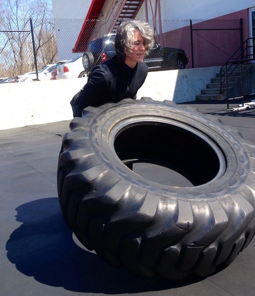 A friend snapped this picture of me flipping a tire last spring. (And no, that’s not a blazer! It’s just a fleece top with very crisp shoulders!)