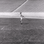 In this clip, from Buster Keaton’s “College,” we see a clearly strong and ripped Keaton throwing the javelin as hard as he can but barely making any distance. (This is a short clip of other track and field failures from the movie.)