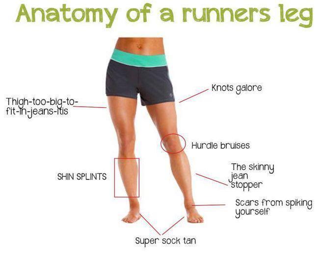 There is only one thing runners love more than running — and that’s complaining about all the petty discomforts of running. This image, which I found on fuelrunning.com, sticks pretty close to that theme, except for one thing: shin splints.
